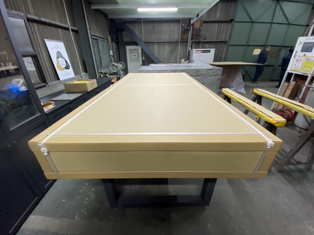 梱包という作業は、最終納品物の「表現」という意味においては、金属ではない梱包材を使用するものではありながらも、メタル処理の一環であるというように考えています。というより、そう考えるべきだということにお恥ずかしながら最近気付かされました。 というのも、お客さまからお叱りを頂いたのです。「こんな高価なものをこんな雑な梱包で持ってくるのはがっかりする」と。これには、痛烈な反省を覚えました。もちろん、これまでも、我々が考えうる最も安全な方法で運搬し、設置していたつもりです。しかし"つもり"だったのです。ここから、我々は梱包について考えていくことになります。